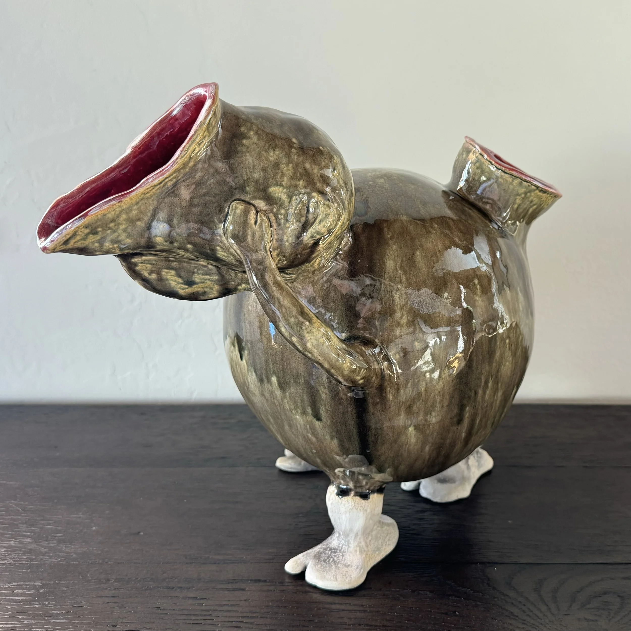 When I was young and studying at art school, I thought the purpose of art was to express angst and suffering. My paintings had names like, “Howling at the Moon“ and were full of dark foreboding. There is certainly a place for that, but for me, I couldn’t have been more mistaken. Now that I am more advanced in years, I realize that my purpose in art is to express joy: the joy of imagination, of not knowing what is coming next; the joy of the beauty and surprise of nature; the joy of relationship, mine with the clay, the pieces with each other; the joy of realizing that I am just an empty vessel allowing all that is given me to flow out through my hands. Sometimes the joy is darker, because it goes deep. If my work makes you happy, or cracks you up, or invites you in, then that is enough. This doesn’t mean that the work is not serious, but I hope the love is there to see.